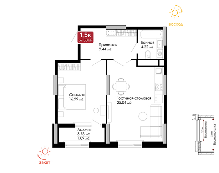 1 комнатная, 57,58 от 15.5 млн ₸
